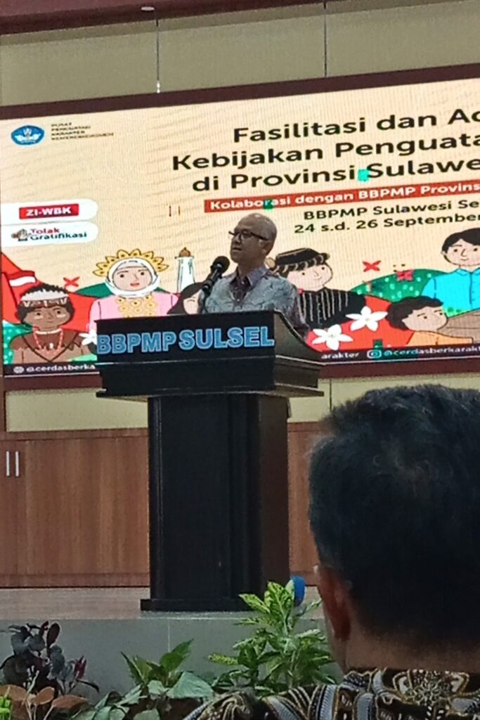 Ibu Rusprita Putri Utami, Kepala Puspeka Kemendikdasmen dalam sambutannya mengatakan ada 149 peserta yang hadir dari 24 kabupaten/kota di provinsi Sulawesi Selatan hari itu. Dari mayoritas peserta berasal dari lingkup Dinas Pendidikan, saya beruntung menjadi peserta yang mewakili komunitas sekaligus orang tua siswa.